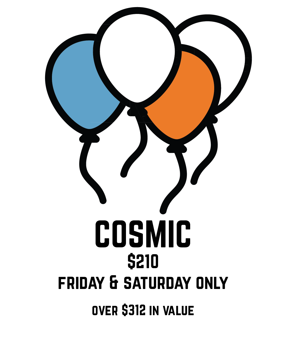 We’ve got you covered with the best birthday party experience! Super, Supreme, and Cosmic Party Packages include the set up and clean up by one of our talented party hosts! A refrigerator and freezer are available for all parties. Just bring the cake, ice cream, guests and we’ll cover the rest! Any birthday party package chosen is bound to be a fun event for that special birthday child!